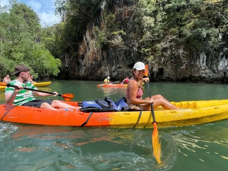 Today is all about nature. We’re heading to Ao Thalane to kayak through one of Thailand’s most beautiful mangrove forests. Keep your eyes peeled for cheeky monkeys, colorful birds, and hidden lagoons as you paddle through calm, jungle-lined waters. After working up an appetite, we’ll stop for a tasty lunch before heading back to chill.